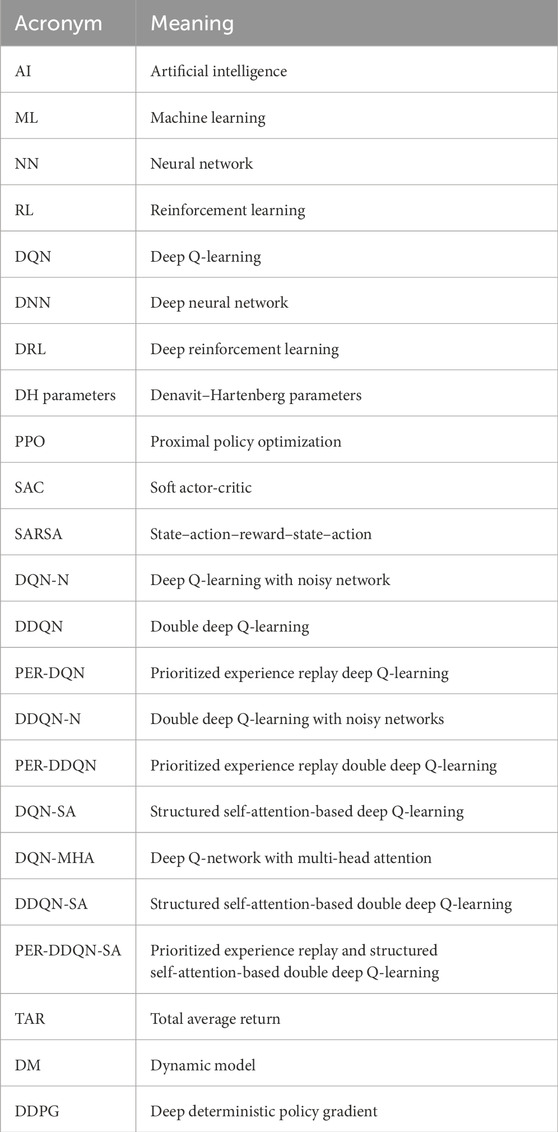 In recent years, rapid developments in processor hardware have enabled artificial intelligence (AI) to significantly transform the field of robotics. AI facilitates the transition from preprogrammed automation to adaptive learning, allowing robotic systems to operate more effectively in complex and dynamic environments. In this context, the success of deep Q-learning network (DQN1) in mastering control policies at a human level across various Atari games (Mnih et al., 2015) has inspired many AI researchers to explore enhancements to DeepMind’s original algorithm (Hausknecht and Stone, 2015; Nair et al., 2015; van Hasselt et al., 2015). DQN has since led to significant advancements in multiple domains, particularly in robotics.