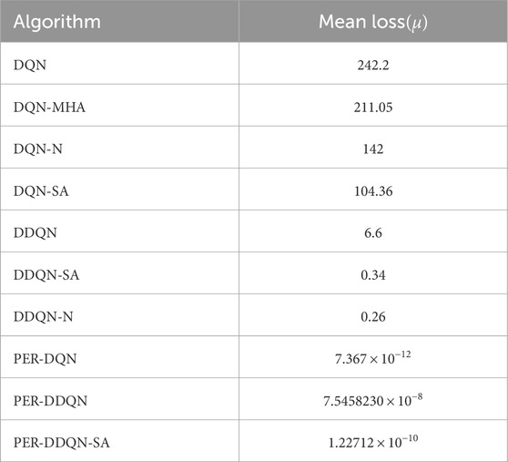 • PER with double DQNs (PER-DDQNs): they integrate the strengths of PER-DQNs and DDQNs to enhance both sampling efficiency and Q-value estimation.