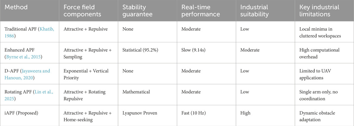 Table 1. Comparative analysis of the proposed iAPF with traditional and existing APF variants for industrial dual-arm manipulation.