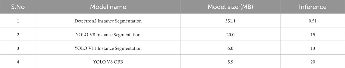 Table 2. Systematic evaluation of models on our custom dataset (nut/bolt) for suitable selection of model.