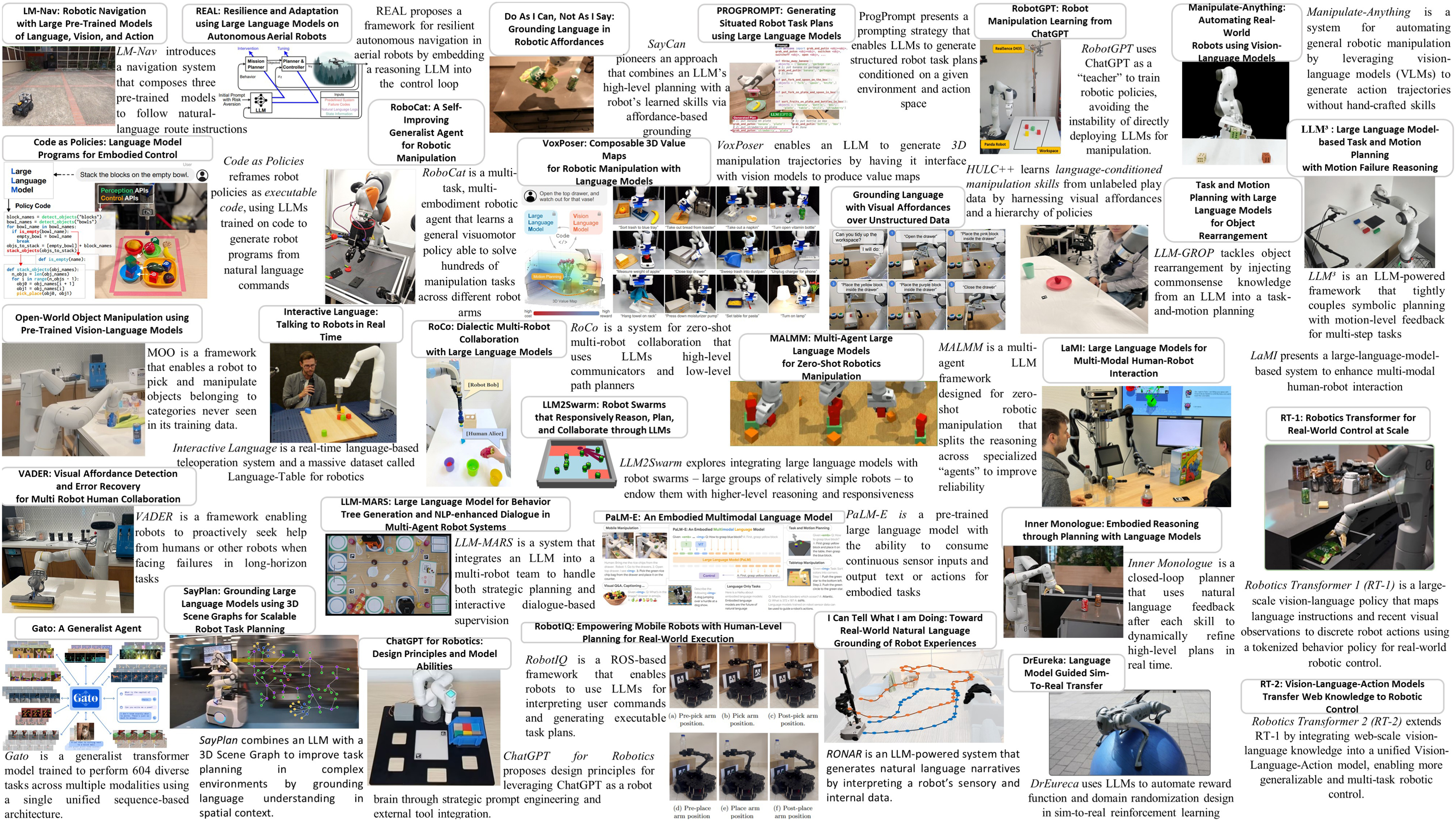 Table 1. Comparison of existing surveys on LLM-based robotics, underscoring their coverage of real-world applications, agentic autonomy, and ethical considerations.