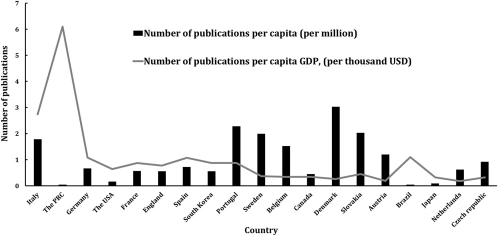 To more effectively assess a country’s research productivity in a specific area, the number of articles per capita,