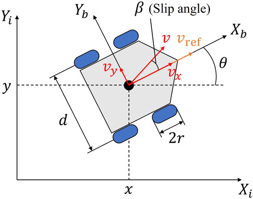First, the concept for evaluating slippage is explained. When a rover traverses on loose soil, the wheels of a rover can slip, resulting in a difference between the desired and actual velocity vectors (Wong, 1978). Slip in the longitudinal direction can be quantified by the slip ratio s, as shown in Equation 1: