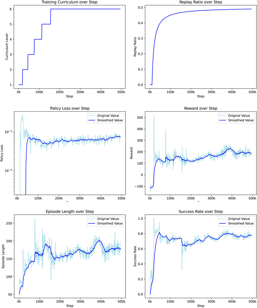3. Curriculum-based training — gradually increasing task difficulty to improve learning stability and generalization;