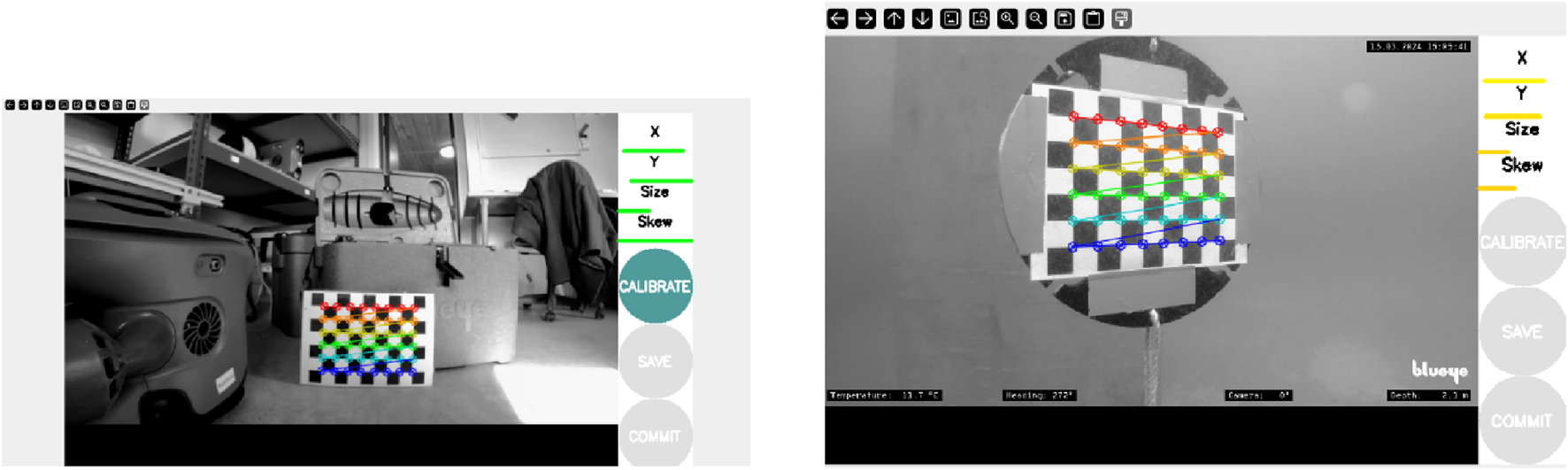 Another challenge is the variable illumination conditions encountered at different depths. Near the surface, sunlight creates strong gradients and overexposed regions in the upper part of the image, while at higher depths, the scene is predominantly illuminated by the onboard LED, resulting in uneven lighting. These variations complicate consistent feature extraction and object detection across the inspection path.