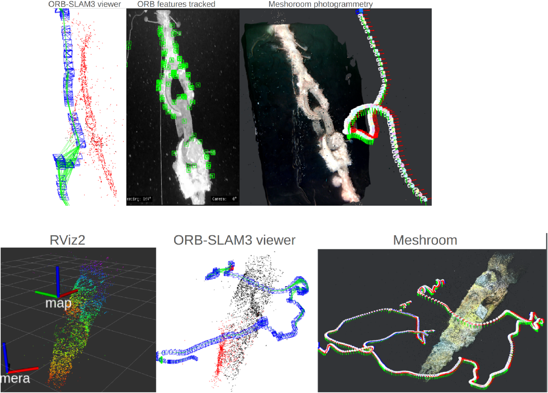 | Manzanilla et al. (2019) | ROV VSLAM nav | ✓ | ✓ | ✓ | ✓ | ✓ | ✗ | O |