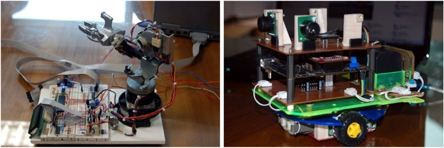 The arm utilized repurposed servomotors (linear mechanism from a CD drive) and modular, education-level controllers. The mapping robot employed camera-free distance sensing (ultrasonic/IR) and on-board processing based on an ESP32 microcontroller (Espressif Systems, 2025). In future configurations, a moderate-cost SBC (for example, Raspberry Pi 3 B+) may support on-board logging and processing. As a methodological baseline, the localization and mapping scheme follows the classical 2D SLAM (Simultaneous Localization and Mapping) approach. Lightweight LiDAR (for example, RPLIDAR A1, 0.15–12 m; 5.5–10 Hz) is reserved for future work subject to budget, while maintaining cost constraints and datasheet configurations (Sharp Corporation, 2006; HandsOnTec, 2017; Raspberry Pi Ltd, 2025; Cadena et al., 2016; SLAMTEC, n.d.).