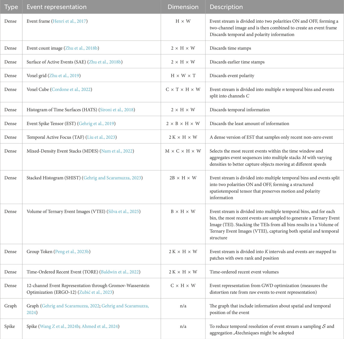 Zheng, X., Liu, Y., Lu, Y., Hua, T., Pan, T., Zhang, W., et al. (2023). Deep learning for event-based vision: a comprehensive survey and benchmarks. arXiv Prepr. arXiv:2302.08890. Version 3, April 2024. Computer Vision and Pattern Recognition (cs.CV). doi:10.48550/arXiv.2302.08890