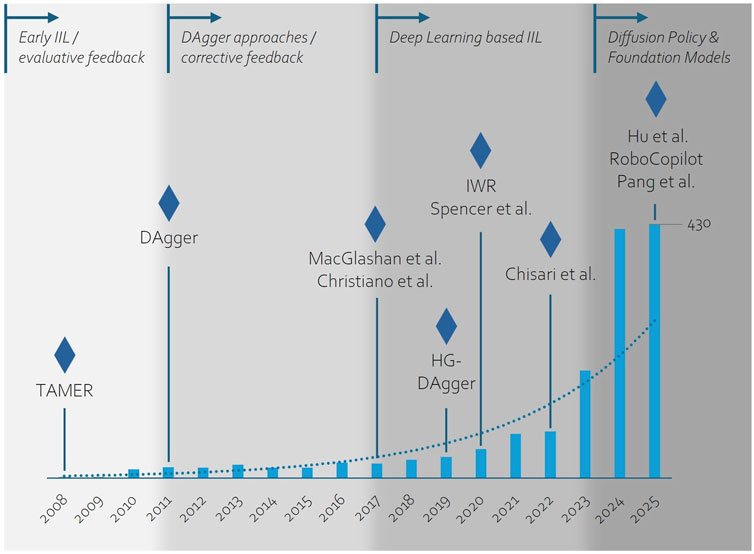Figure 4. Timeline of IIL research, showing key methodological phases overlaid with the annual number of IIL publications (data from scopus database), highlighting landmark works that helped drive growth in the field.