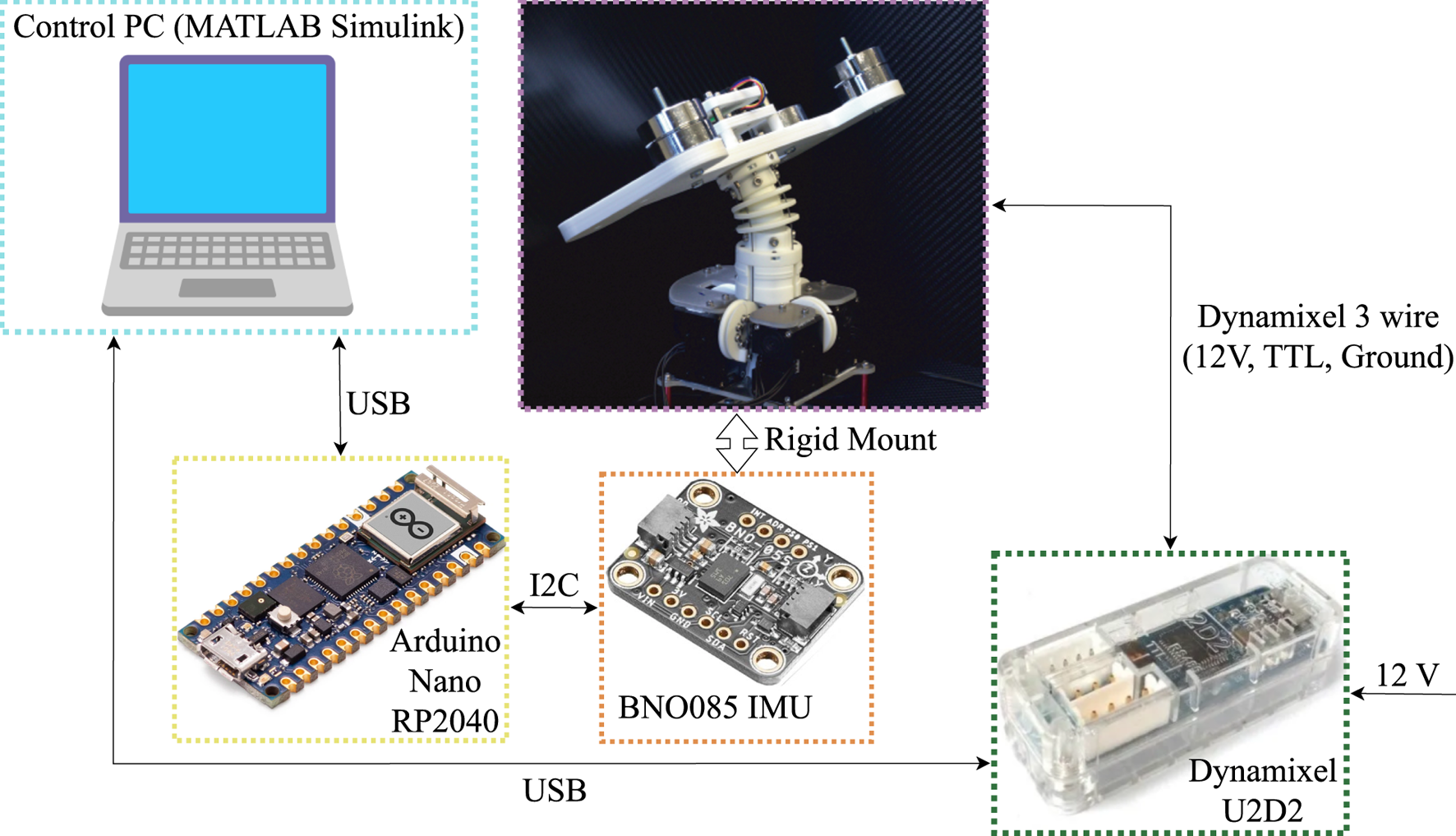 This indirect control approach provides a practical solution for managing unwanted oscillations in unactuated DoFs particularly valuable in applications such as human–robot interaction, rehabilitation, and wearable robotics, where compliance is essential but unmitigated vibrations reduce performance and comfort. However, the system remains sensitive to sensor artifacts, including yaw drift caused by magnetic interference in the IMU, which can degrade feedback quality and increase unnecessary control effort. Future implementations may benefit from improved sensing pipelines, such as sensor fusion or magnetometer-free estimation techniques.