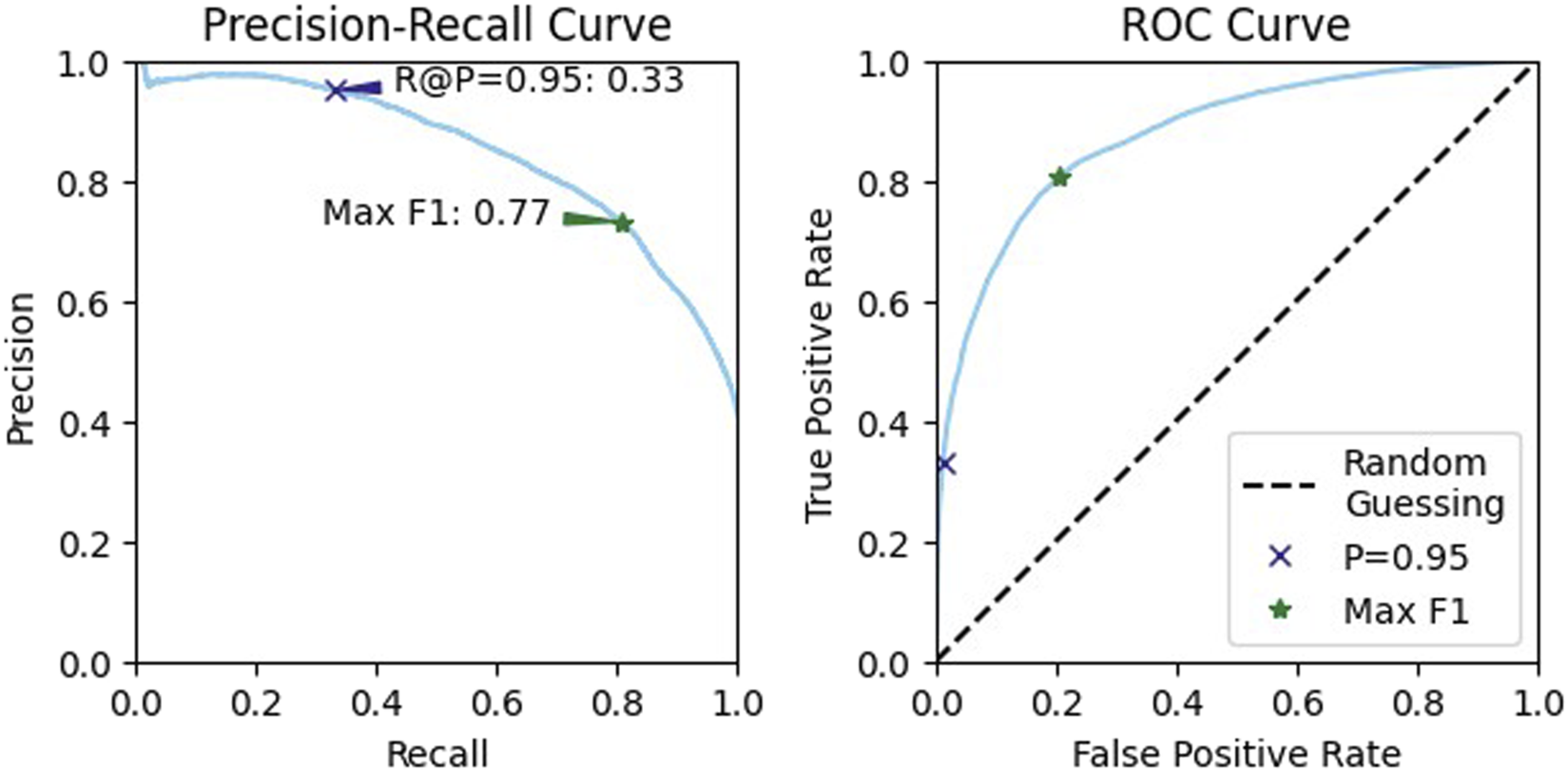 We formatted the fruit picking data in the style of the dataset on which our model was trained. We downsampled the IMU data to 40 Hz to match the sample rate used in our manipulation trials with the two finger gripper. Since the hand used in those trials had only two fingers, we constructed feature matrices for each possible pair of fingers on the three-finger gripper (fingers 1 & 2, 1 & 3, and 2 & 3). These were constructed using the same method described in Section 4. This resulted in three sets of feature matrices, one for each of the three finger pairs, and one set of shared labels. We pre-conditioned this data to have a mean of zero and standard deviation of one for each feature. A total of 1,179 examples (3.3% slip) were generated in this manner from across the 77 trials.