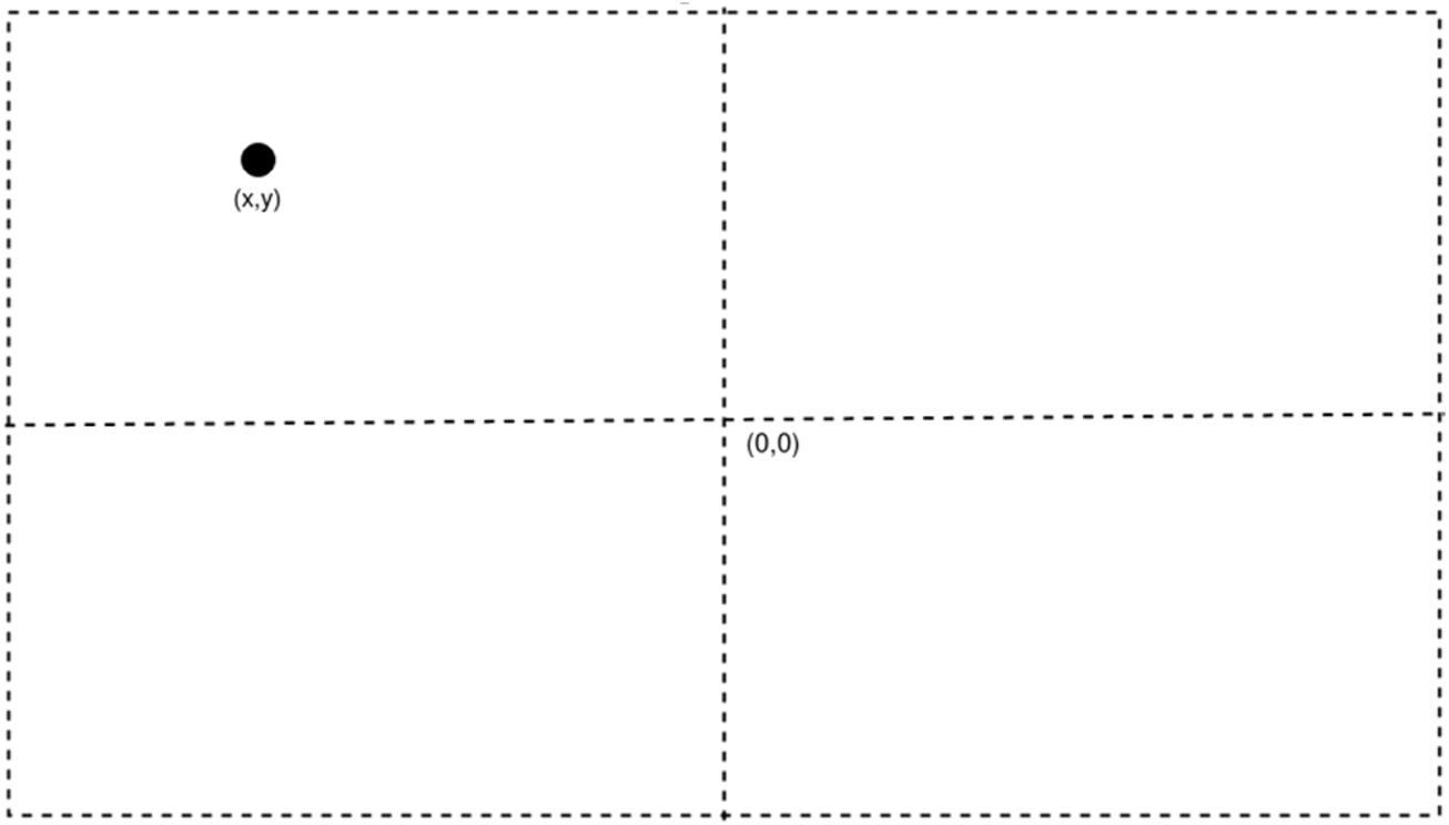 The prismatic joint being ignored gives a 2R robot on a 2D plane with the two rotation joints being parallel to each other and the values of z-axis are being ignored too. All calculations in the methodology and the results are made only considering the x and y-axis. The end effect or of the robot has a camera attached to it, and the images taken from it are assumed to have the camera at origin of the frame. This ensures that any object placed inside the frame is at exactly (x,y) coordinate in the relative frame as shown in Figure 3.