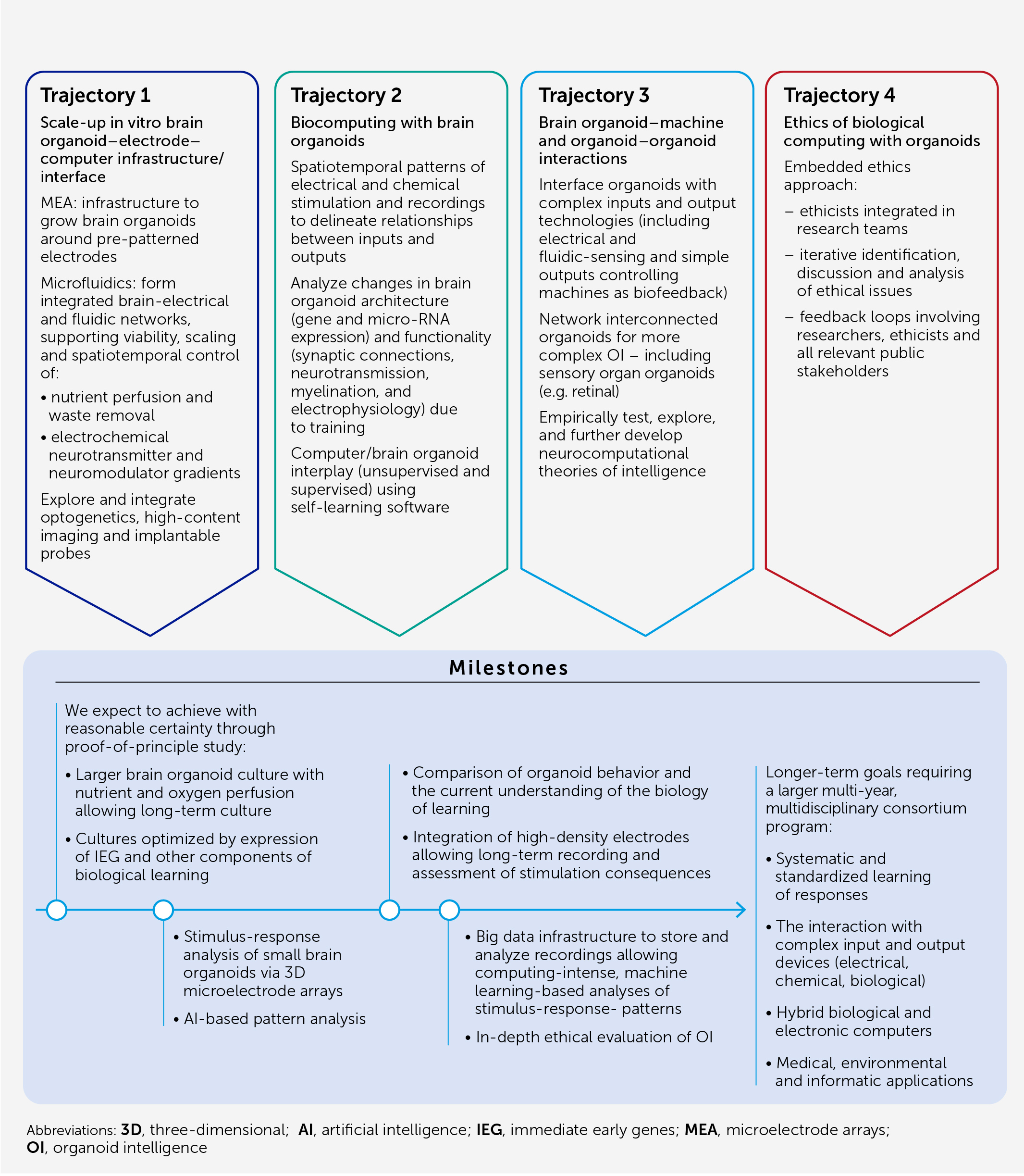 OI requires scaling up current brain organoids into complex, durable 3D structures enriched with cells and genes associated with learning, and connecting these to next-generation input and output devices and AI/machine learning systems.