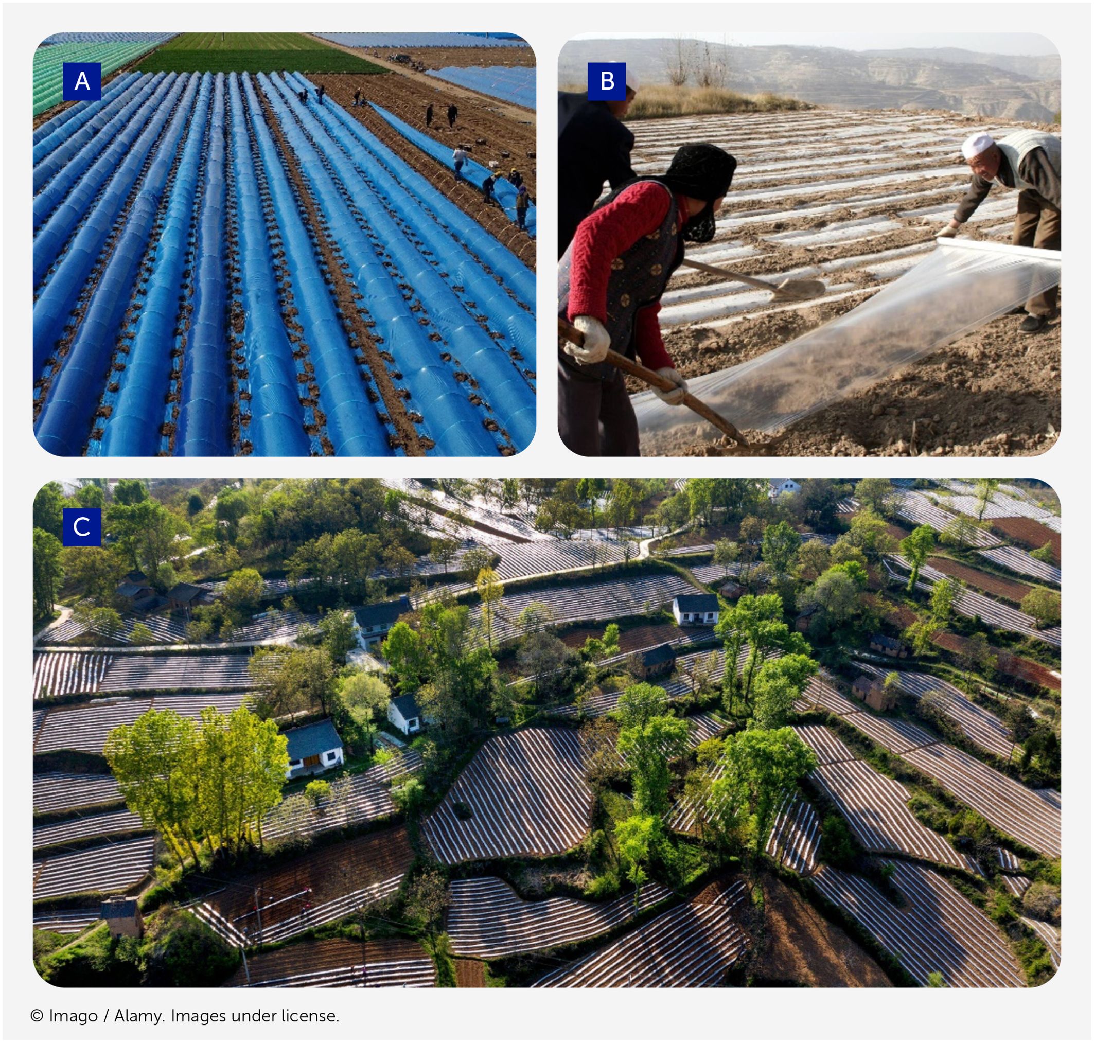 Figure 1. Plastic film mulching in Chinese agriculture. This practice has transformed farming productivity in water-limited regions while also raising concerns about microplastic accumulation in soils. Image credit: © Imago/Alamy. Images used under license and not included in the article’s Creative Commons license.
