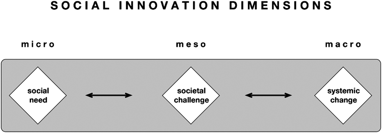 FIGURE 1. Adaption of the three Bureau of European Policy Advisers (BEPA) (2010) levels of social innovation.