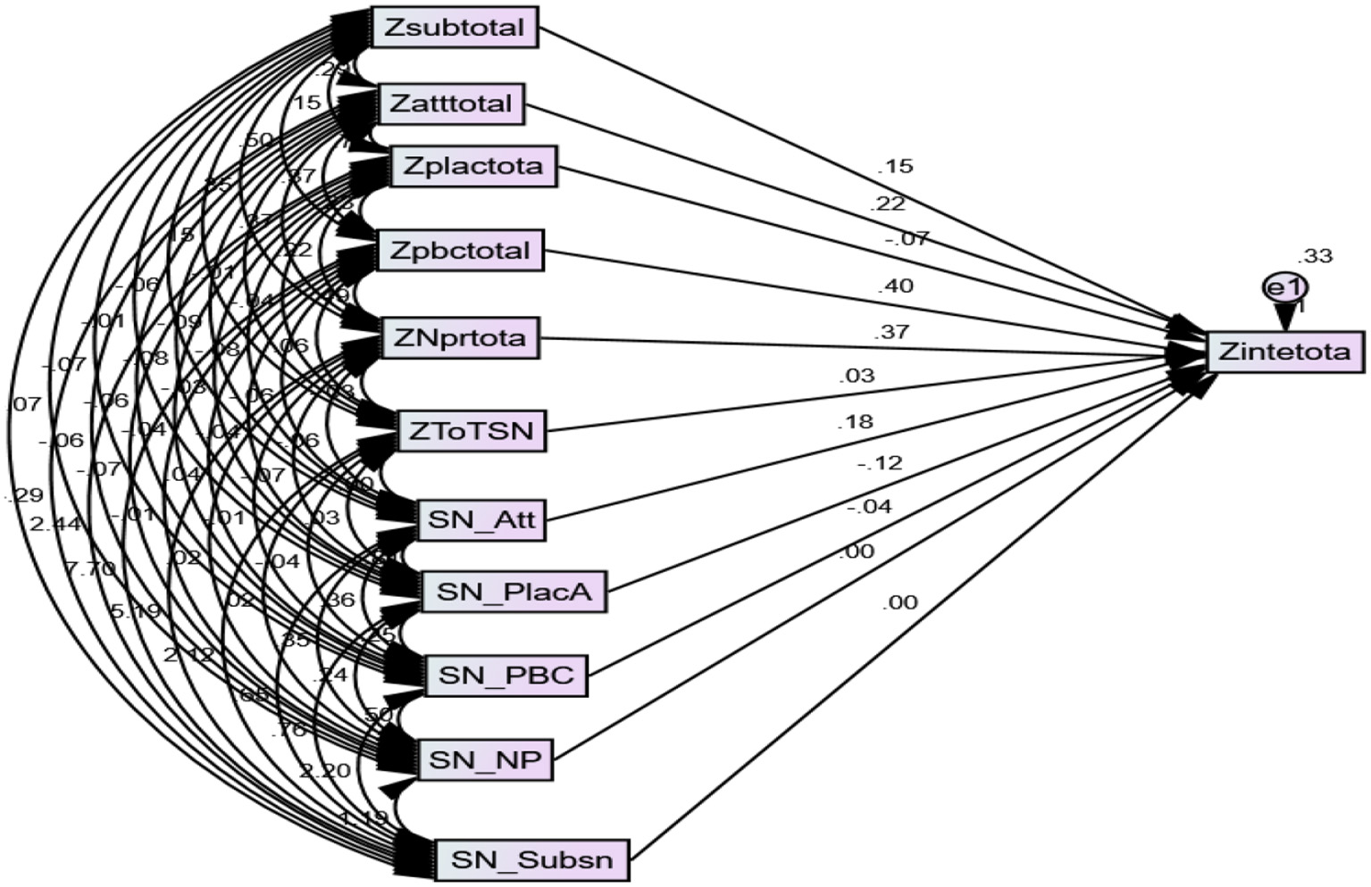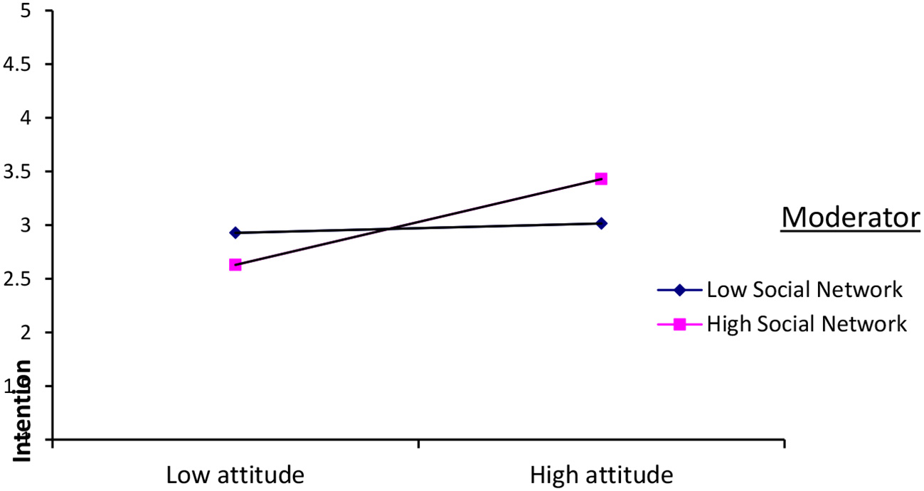 To test the moderation effect of social networks on migration intention and the predictor variables (attitude, national pride, place attachment, subjective norm, and perceived behavioral control), structural equation modeling was employed using Amos version 26.