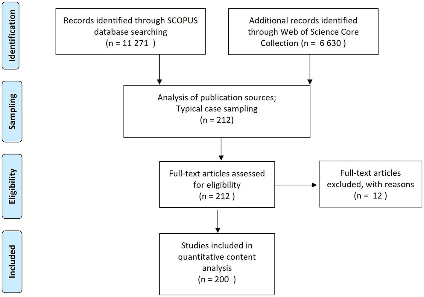 Texts eligible for inclusion were located in the Web of Science Core Collection and SCOPUS databases (Gusenbauer and Haddaway, 2020). Our sampling included several major steps. First, the total set of relevant academic texts was drawn through criteria sampling considering all texts up to the end of the year 2020.1 We limited the search results to articles, books, and book chapters from social sciences, environmental sciences, and multidisciplinary research. Our inclusion criteria are: the use of the keywords “environmental attitudes” and “environmental behavio(u)r” in titles, abstracts, or keywords; the type of document: article, book, book chapter; social sciences, environmental sciences, or multidisciplinary research indicated as the main subject area. Our exclusion criteria after reading the abstracts or texts are: if texts included theoretical discussion but did not report an empirical study; if texts were meta-analyses; if neither environmental attitudes nor individual environmental behavior was the dependent variables of the study. The second step employed typical case sampling because we aimed at studying typical trends found in the academic texts explaining individual environmental attitudes and behavior. To identify the most typical cases we analyzed the publication sources (journal and book titles). An analysis of main publication sources as returned by Web of Science Core Collection database showed that most of the texts were published in Journal of Environmental Psychology (established in 1980), Environment and Behavior (est. in 1969), Journal of Cleaner Production (est. in 1993), and Sustainability (est. in 2009). An analysis of the main publication sources returned by SCOPUS showed that most of the texts were published in Journal of Environmental Management (est. 1973), Sustainability (est. in 2009), Environment and Behavior (est. in 1969), Journal of Environmental Management (est. in 1974), and International Journal of Environmental Research and Public Health (est. in 2004). The results indicate that the journal Environment and Behavior (EB) is the most typical source, as it is the only source that appears among top sources in both databases, has a focus on the link between behaviors, attitudes, and the environment, and was established shortly after the inception of environmental sciences. Recent research (Zhu et al., 2021) further confirms that EB journal is the most popular journal in the field of environmental behavior studies. We thus can assume that work published in EB influences related research significantly across the globe and that an analysis of this journal is of interest to many scholars.