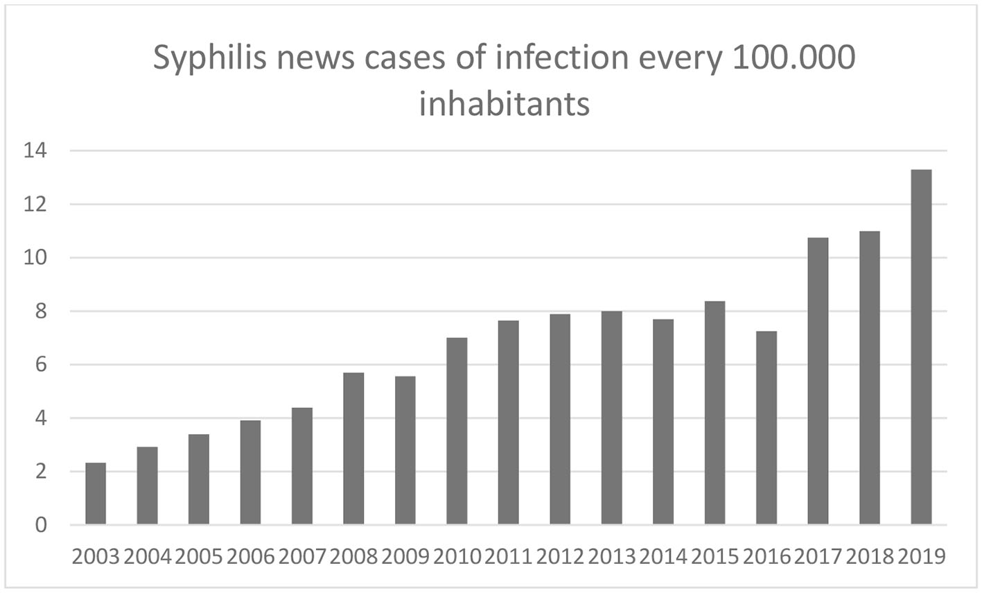 Evolution of syphilis cases (2003–19).