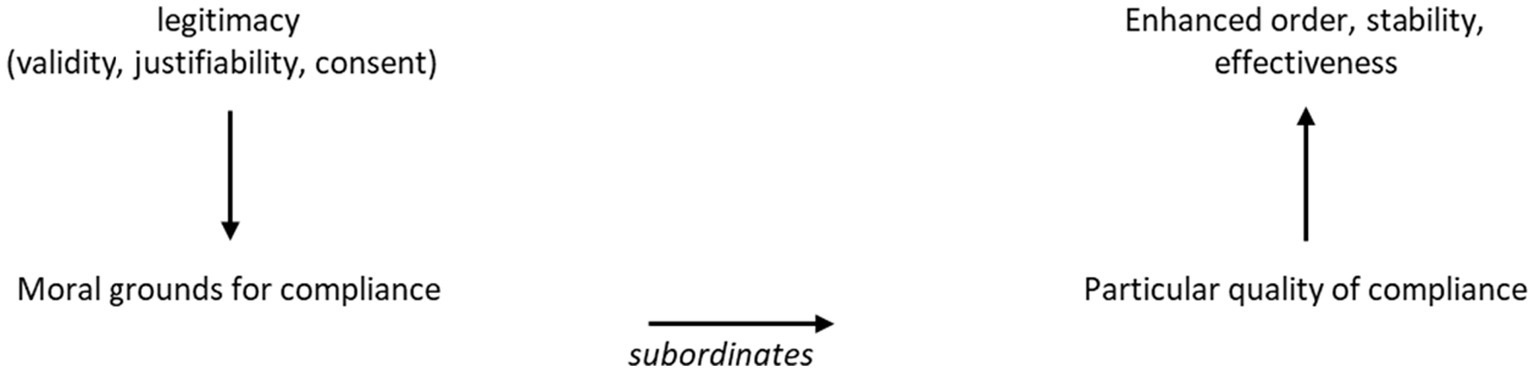 Understanding legitimacy requires the identification of multi-dimensional, qualitatively different elements that constitute legitimacy. As such, power can be considered legitimate if.