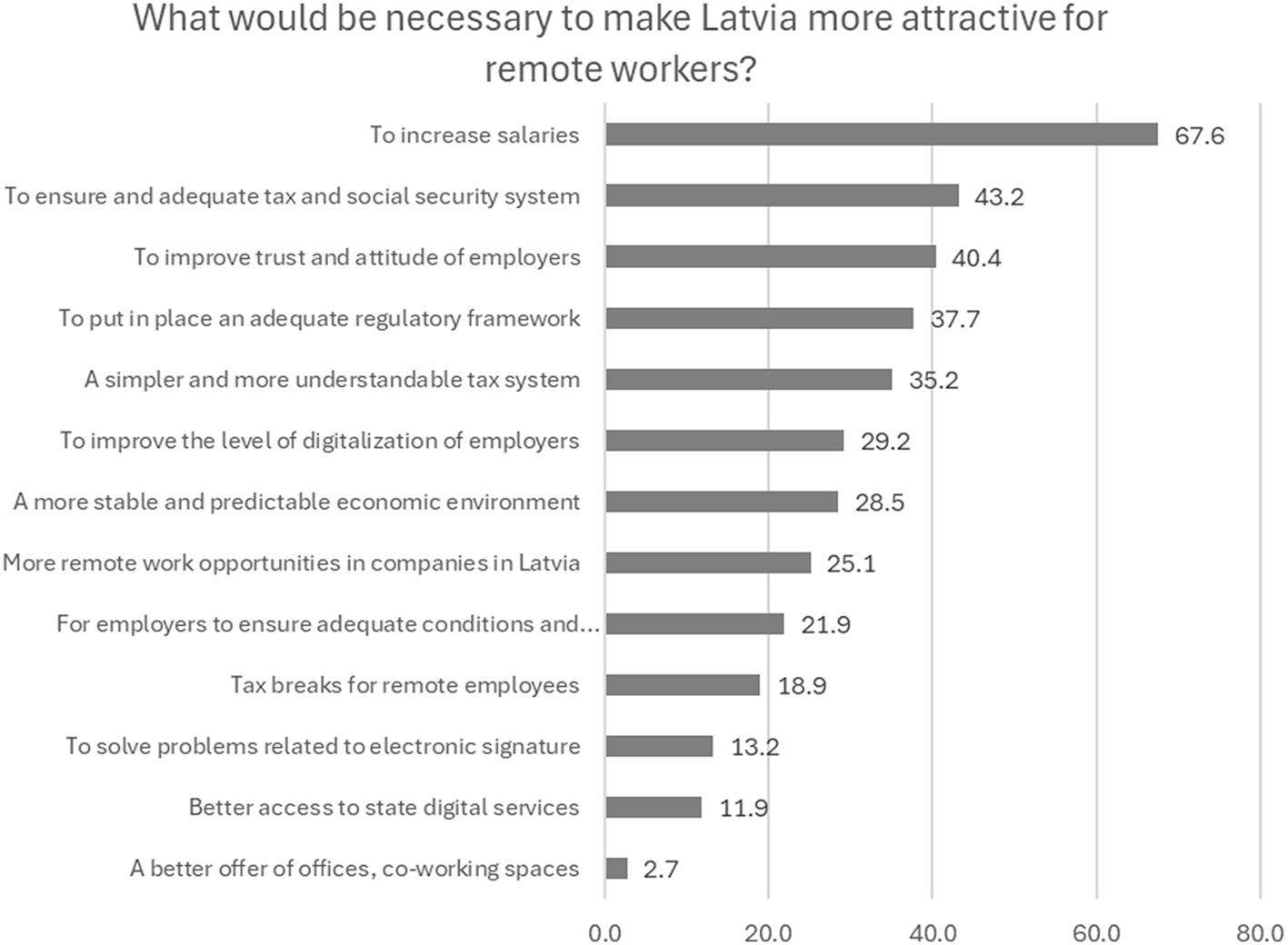Figure 7. What improvements would be necessary to make Latvia a more attractive place for remote workers? (%). Source: survey of remote workers (2021).