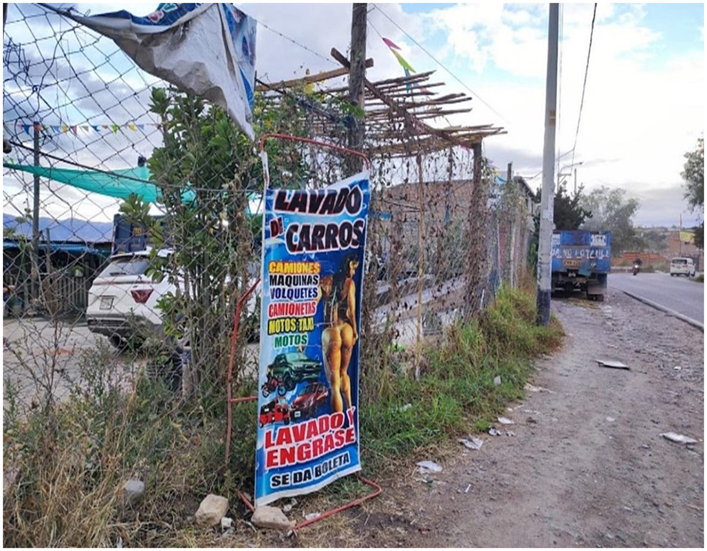 Interviews with passersby, clients, and neighbors of car wash services, mostly Venezuelans who work illegally and earn according to the number of vehicles washed daily, show that the reality of the work does not match the advertising images. An investigation shows that “they chose Peru and the city of Ayacucho as places of arrival driven by the positive comments of stability, ease of getting work and earning money; generating social imaginaries of work, money, self-improvement, quality of life and well-being” (Martínez, 2019, p. 177). The work they were able to access consisted of washing cars in informal places that were not supervised by local or national authorities. The work is done on public roads with limited space for a small vehicle, and posters featuring attractive women are also displayed along these roads. Venezuelan workers, peasants, children, and other age groups do not match the advertised image. Work cases such as car washing for mothers: “it is about a mother carrying her baby in a lliclla (Andean blanket) and this does not stop her from working in a car and motorcycle washing area in that jurisdiction” (Ticona, 2022). There is no place where the car wash service is advertised for women on the sign.