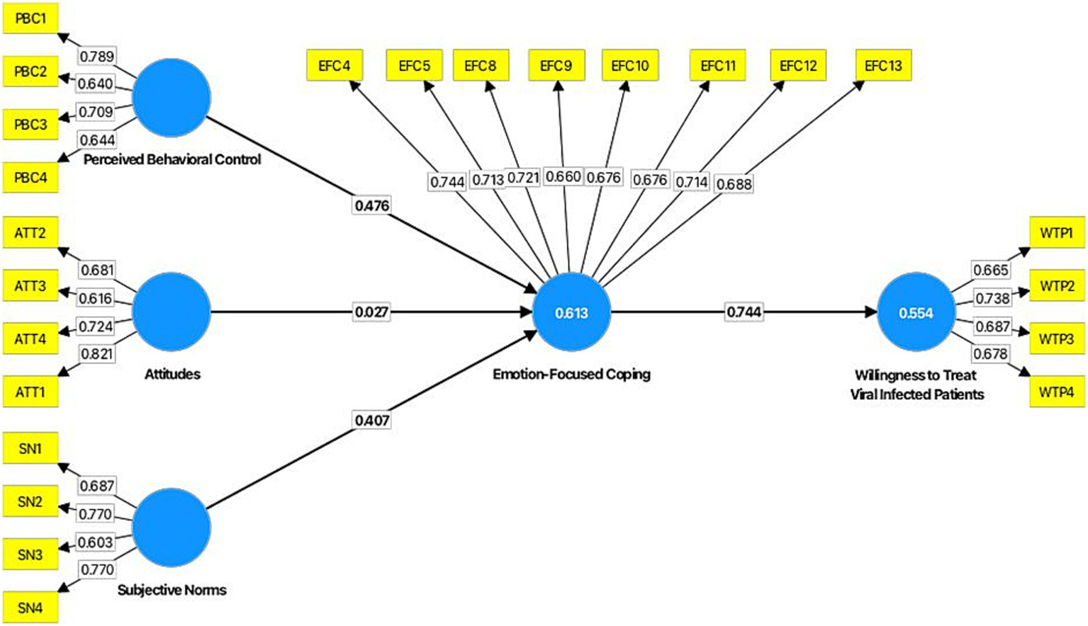 2.1 Perceived behavioral control, emotion-focused coping, and willingness to treat viral infected patients