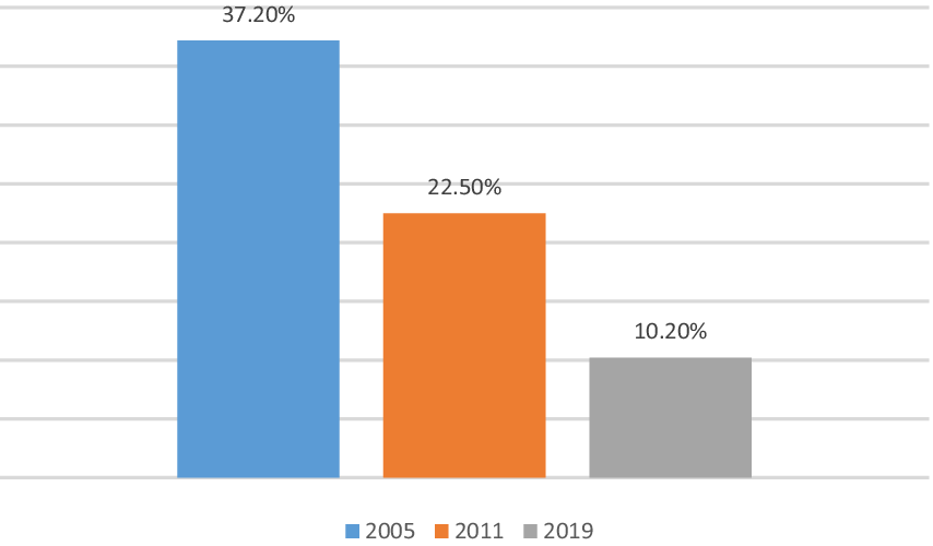 Trends in monetary poverty in India (2005–2019). Source: Visualization based on Planning Commission, Government of India (2009) and Sinha Roy and Van Der Weide (2022).