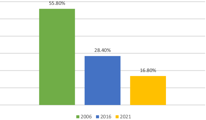 Trends in multidimensional poverty in India (2006–2021). Source: Visualization based on Das et al. (2023).