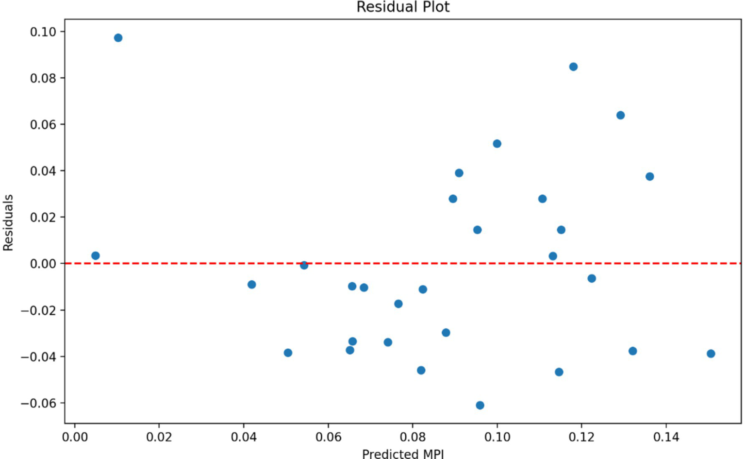 The study’s findings reveal a national, rural MPI of 0.110, with 26% of the rural population experiencing multidimensional poverty. The study’s results also show that a statistically significant negative correlation exists between rural MPI and local governance effectiveness, with a 0.32% reduction in MPI for every 1% improvement in governance effectiveness. Conversely, higher SC and ST population densities are associated with increased MPI, with a 0.14% rise in MPI for each 1% increase in these densities. The study also highlights that ST population density has a stronger association with MPI than SC population density, indicating greater vulnerability to multidimensional poverty in areas with higher ST populations.