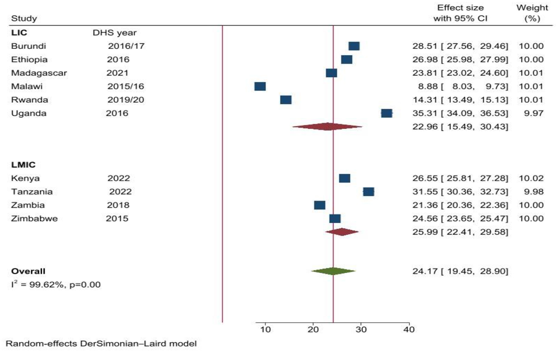 Community level independent variables included in our study are Place of residence (urban, rural), Community level education (low, high) constructed from respondents' educational status, Community level poverty (low, high), constructed from wealth index, Community level media exposure (low, high) constructed from individual level media exposure and Country Income (LMIC, LIC) classified based on World bank list of economies 2023–2024 (World Bank, 2023). Kenya, Tanzania, Zambia and Zimbabwe were classified as Lower middle-income countries and Burundi, Ethiopia, Madagascar, Malawi, Rwanda, and Uganda were classified as Lower income countries.