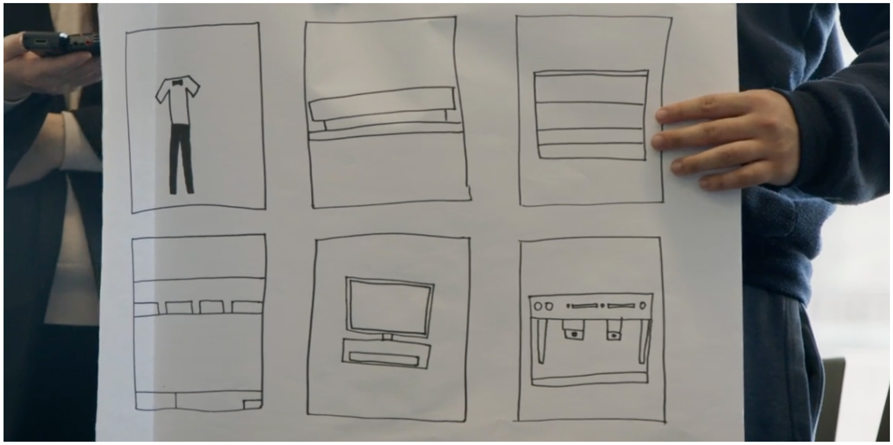 A participant displays their drawings from a workshop. The drawing depicts concisely how they use digital technology in several ways throughout their day-to-day activities.