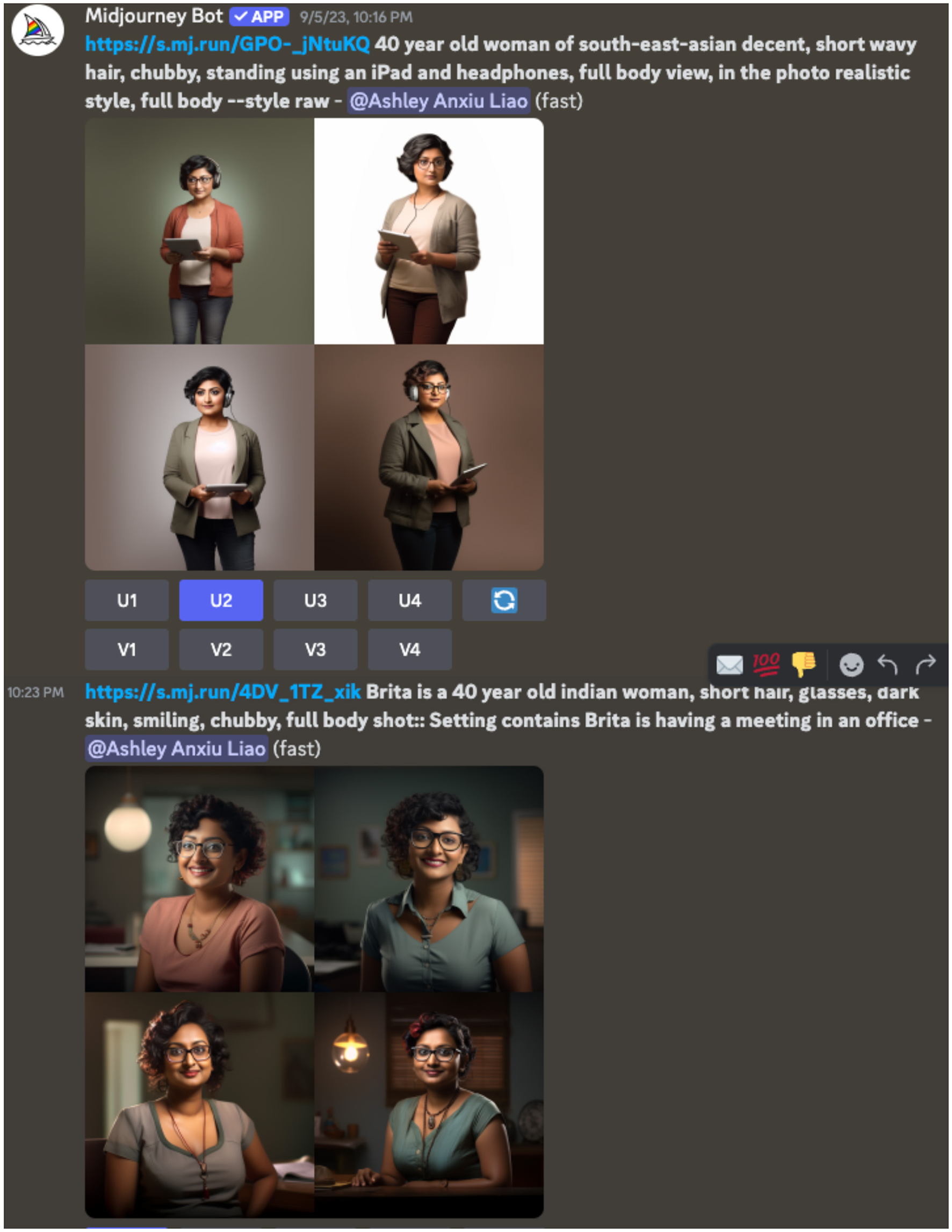 The final iterations of AI generative visualizations of Nidhi, using detailed, explicit descriptors.
