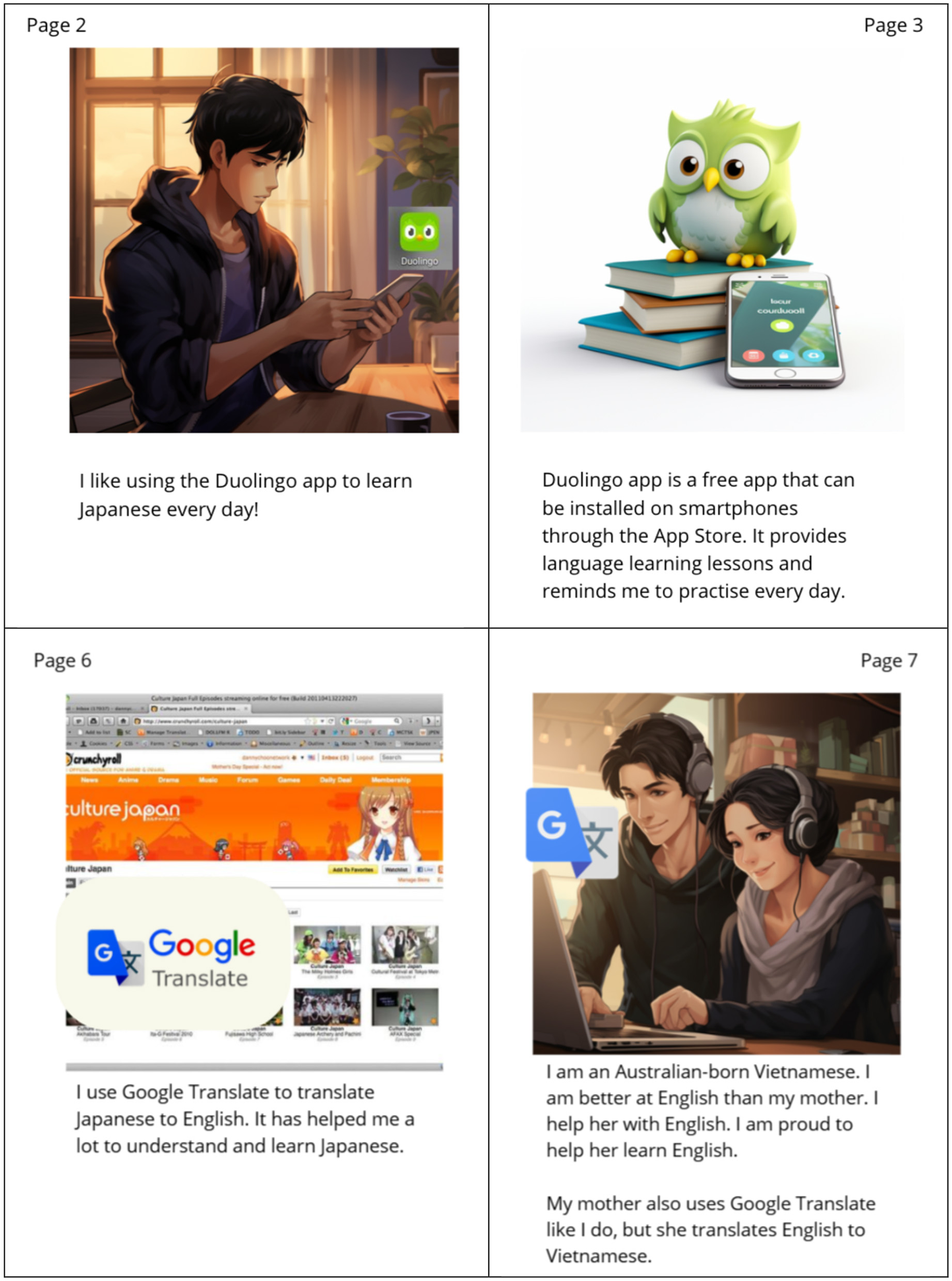 Mani is an Australia man (second-generation) in his 20s with parents who migrated from Vietnam with intellectual disabilities. He speaks Vietnamese and English. At the time when the workshops were conducted, Mani resided in his family home with his parents and sister. He loves technology, and uses it diversely: exploring interests, making friends, learning a language, and helping his family with different online platforms.