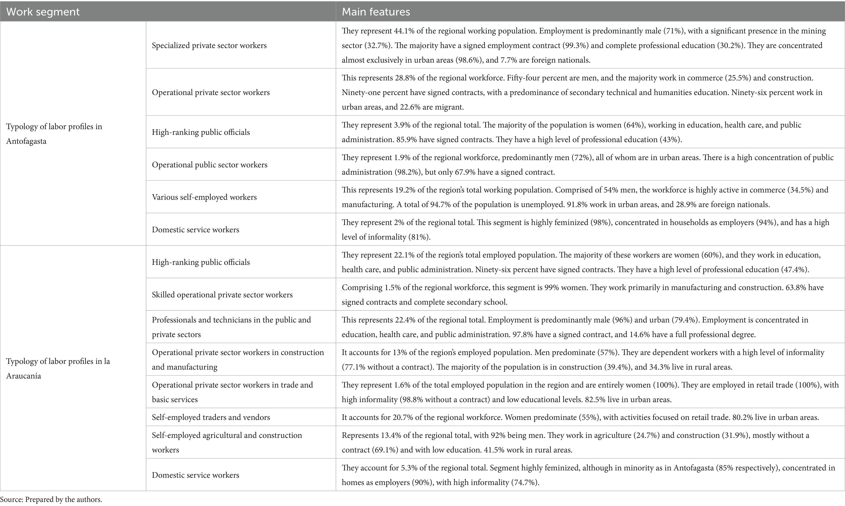 Citation: Blanco O, Julián-Véjar D and Osorio-Rauld A (2025) Segmentation and regional analysis: labor typologies and geographic inequality in Antofagasta and La Araucanía, Chile. Front. Sociol. 10:1636282. doi: 10.3389/fsoc.2025.1636282