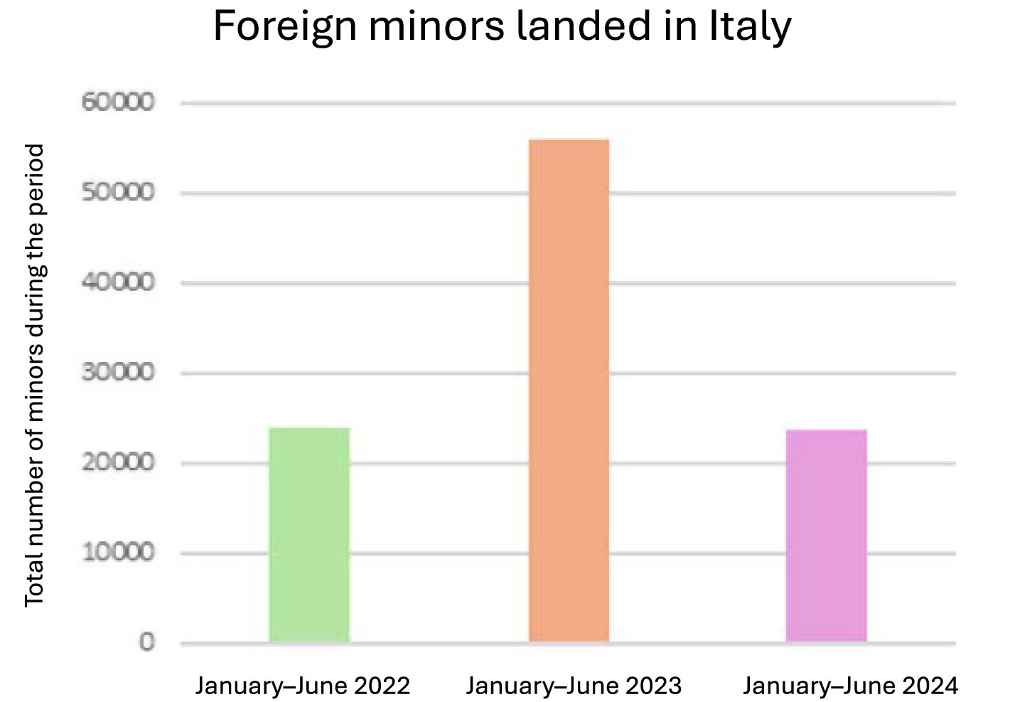 Foreign minors disembarked in Italy during the first semester of 2022–2024. Own elaboration.