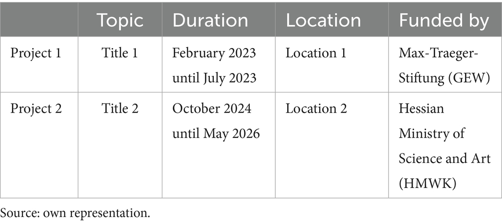 The author(s) declare that financial support was received for the research and/or publication of this article. This article is based on two research projects. Study I was funded by the Max Traeger Foundation, and Study II was funded by the Hessian Ministry of Science and the Arts (HMWK).