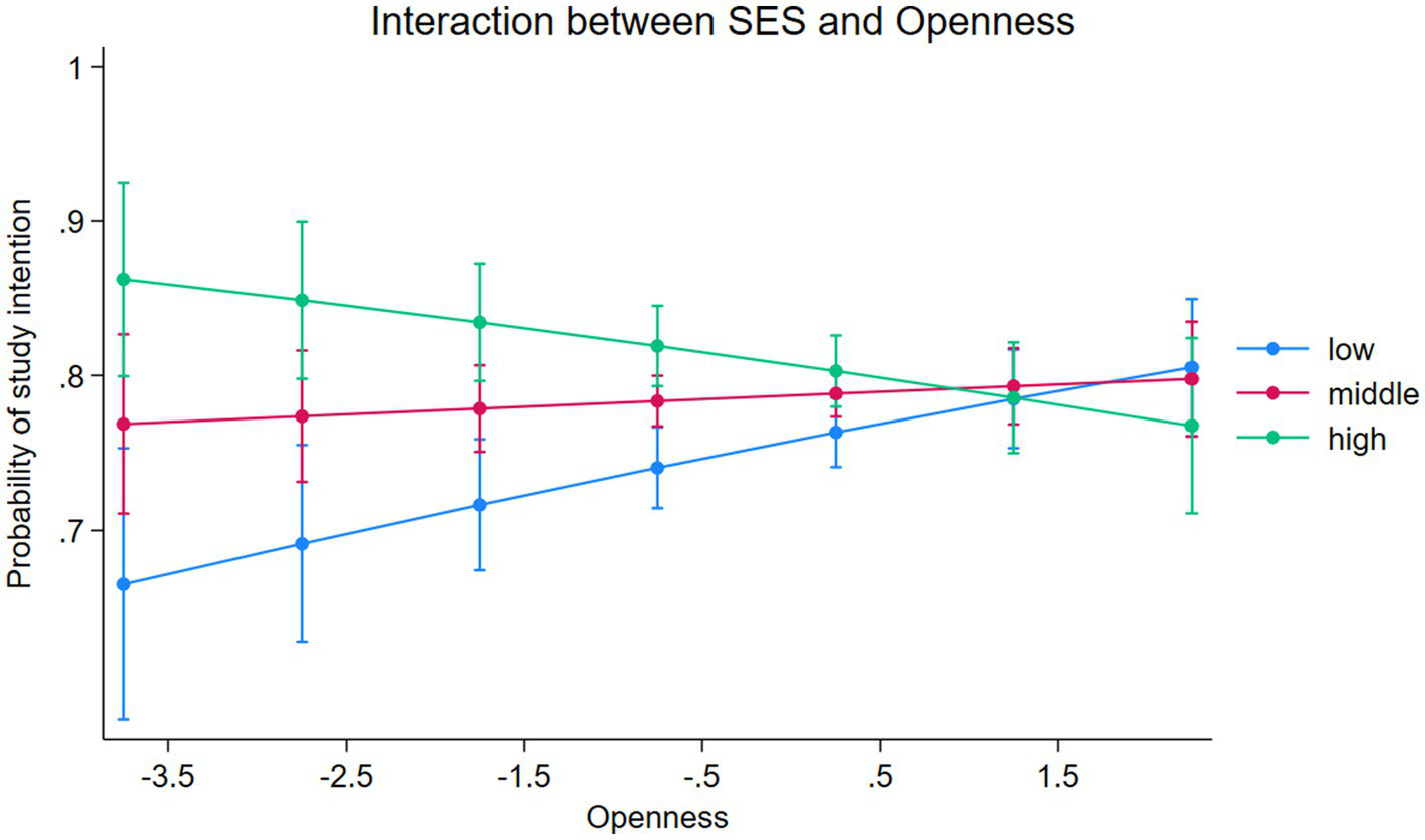 4.2 Are personality traits more important for children from less advantaged social origin for their study intention?