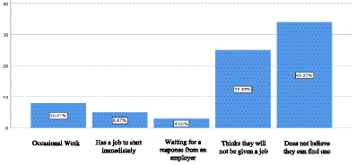 Similarly, the analysis of the reasons for not seeking employment reveals that 45.33% of individuals refrain from job searching because they believe they will not find work, while 33.33% perceive a complete absence of opportunities. These responses constitute empirical expressions of anomie, understood in Durkheimian terms as the weakening of normative structures that guide expectations and actions. This interpretation aligns with classical sociological perspectives arguing that work, meaning, and social integration are deeply interdependent elements within capitalist societies (Knight, 1979). Feelings of resignation, institutional distrust, and demotivation reflect processes of social disintegration associated with interrupted or precarious labor trajectories.