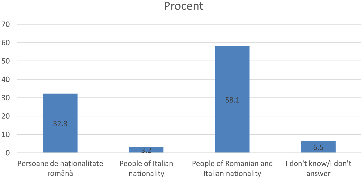 The following are the results of the research obtained from the application of the questionnaire among the members of the Romanian community in the Florence region. The data analysis is carried out according to the objectives formulated above, having as a starting point the general objective of the study: to investigate the way in which the Romanians settled in this area define themselves. Within this framework, a series of specific objectives were established, which guided the process of data collection and interpretation, as well as relevant dimensions for the deep understanding of the life experience of the members of the Romanian community in the Italian diaspora.