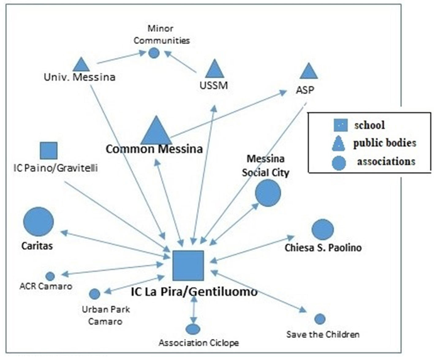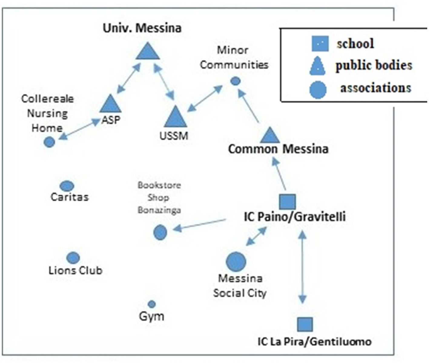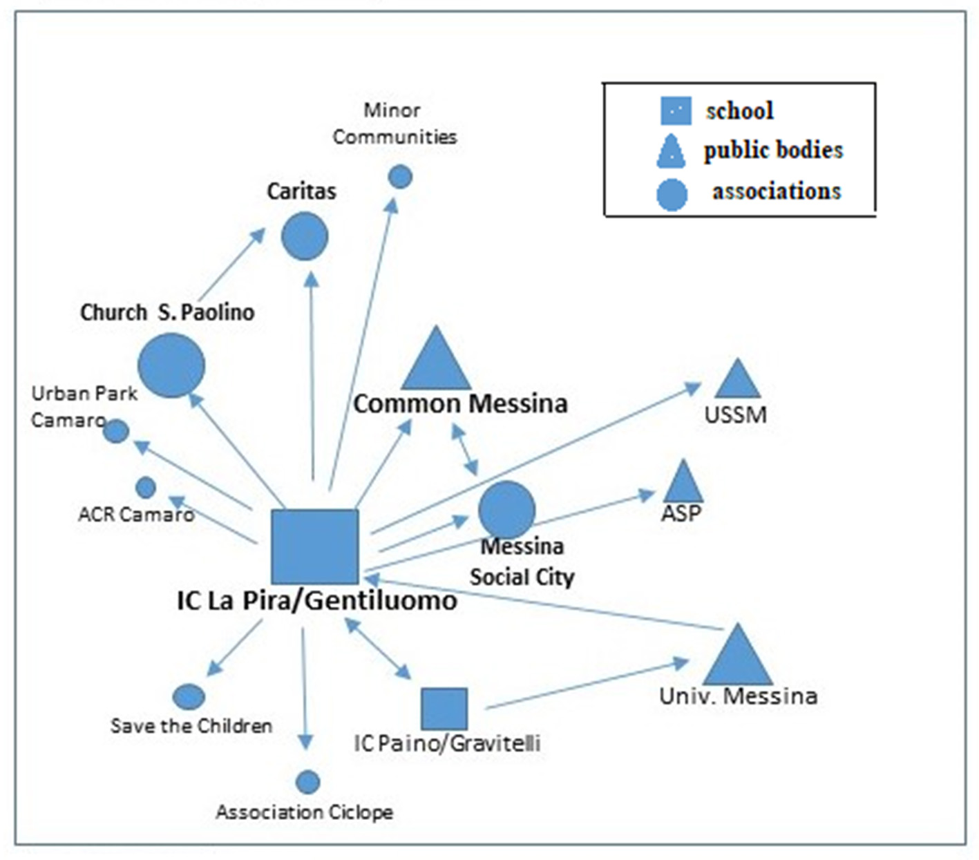 The partnership of Case 1° was composed of 13 partners (IC Piano/Gravitelli, University of Messina, USSM, ASP, Diocesan Caritas, Church of Gravitelli, Cooperativa Comunità Minori; Comunità Cristo Re, Collereale Casa Riposo, Palestra Gym, Messina Social City, Lions Club, Libreria Bonazinga).1
