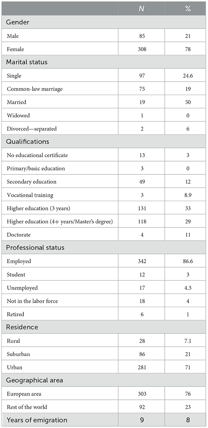 Table 1. Categorical sociodemographic characteristics (N = 395).