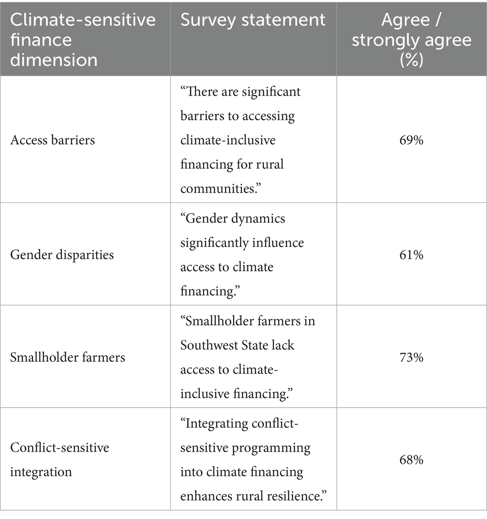 This final question bridges empirical insights with practical solutions, highlighting how climate-smart financing, inclusive rural development, and equitable opportunities can foster sustainable livelihoods.