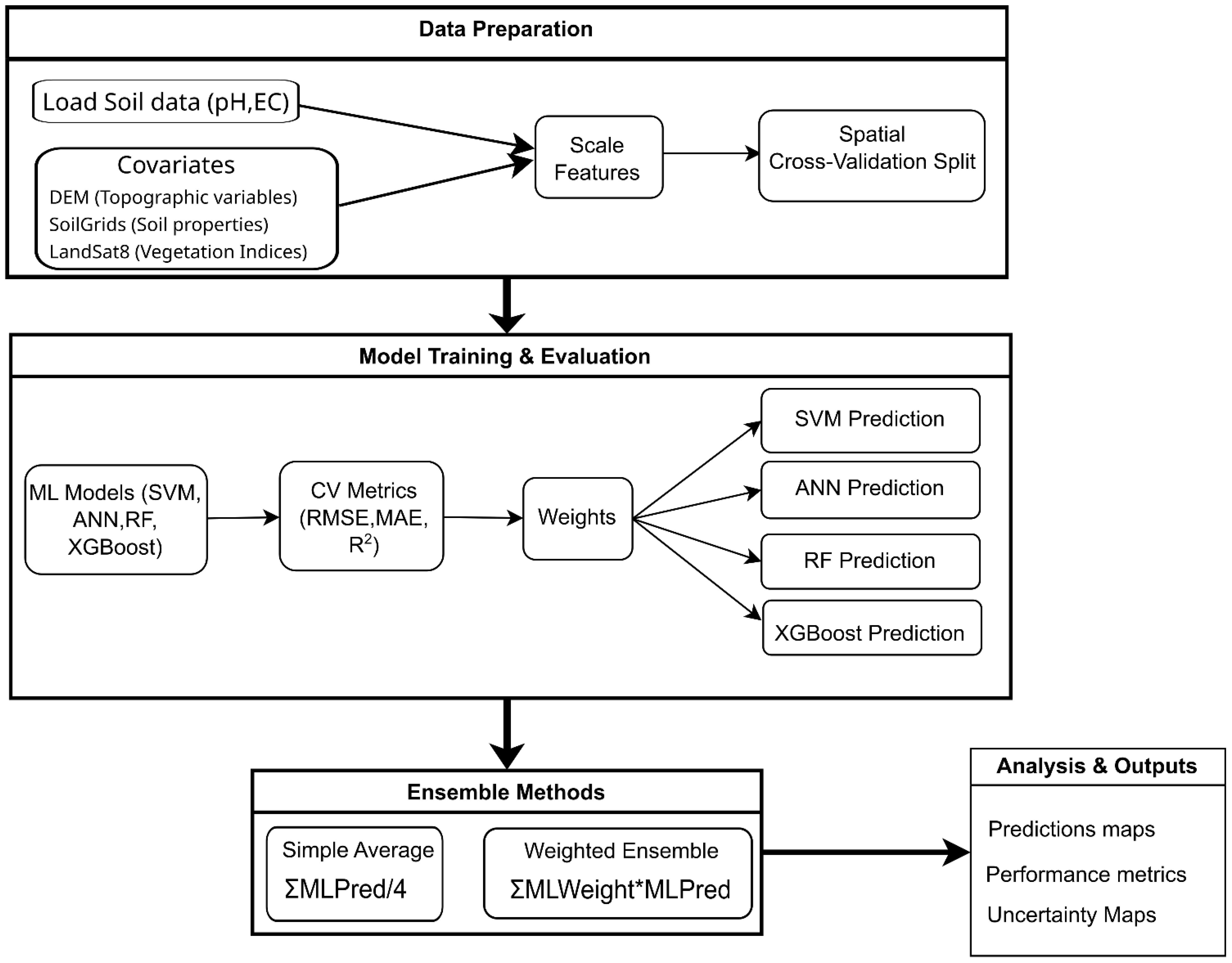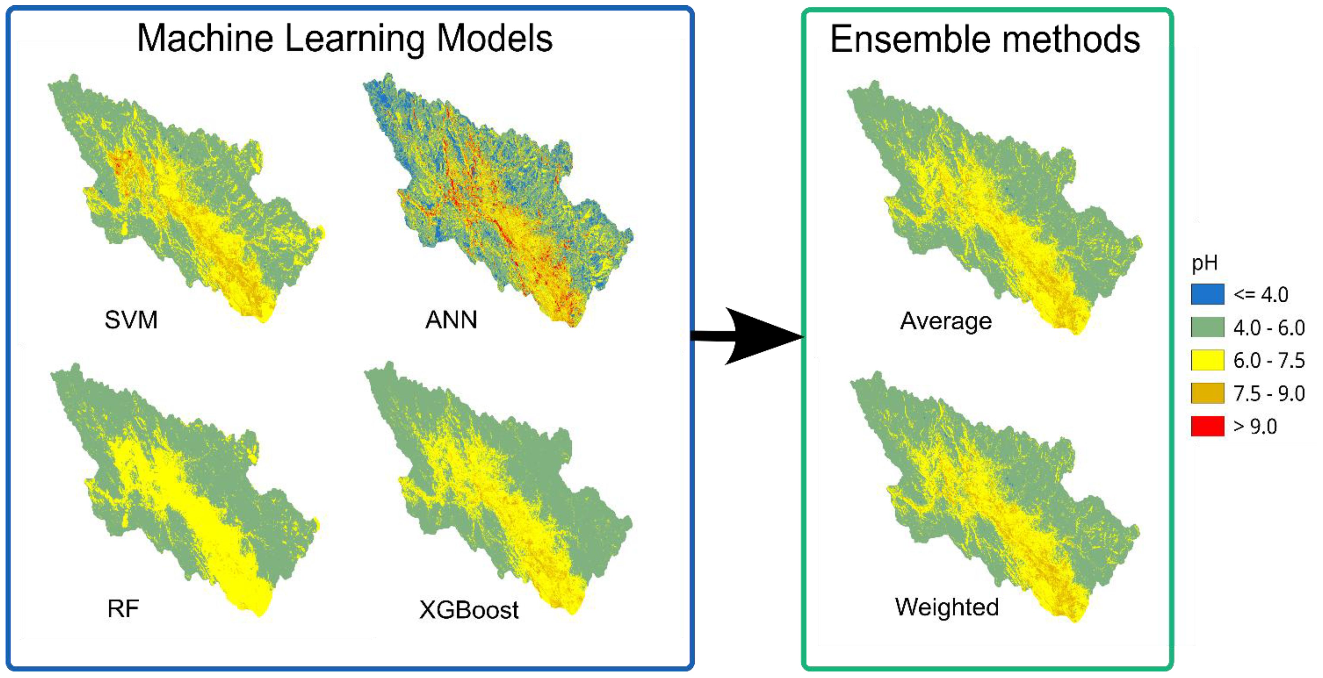 Keywords: ensemble learning, spatial machine learning, digital soil mapping, soil pH, electrical conductivity