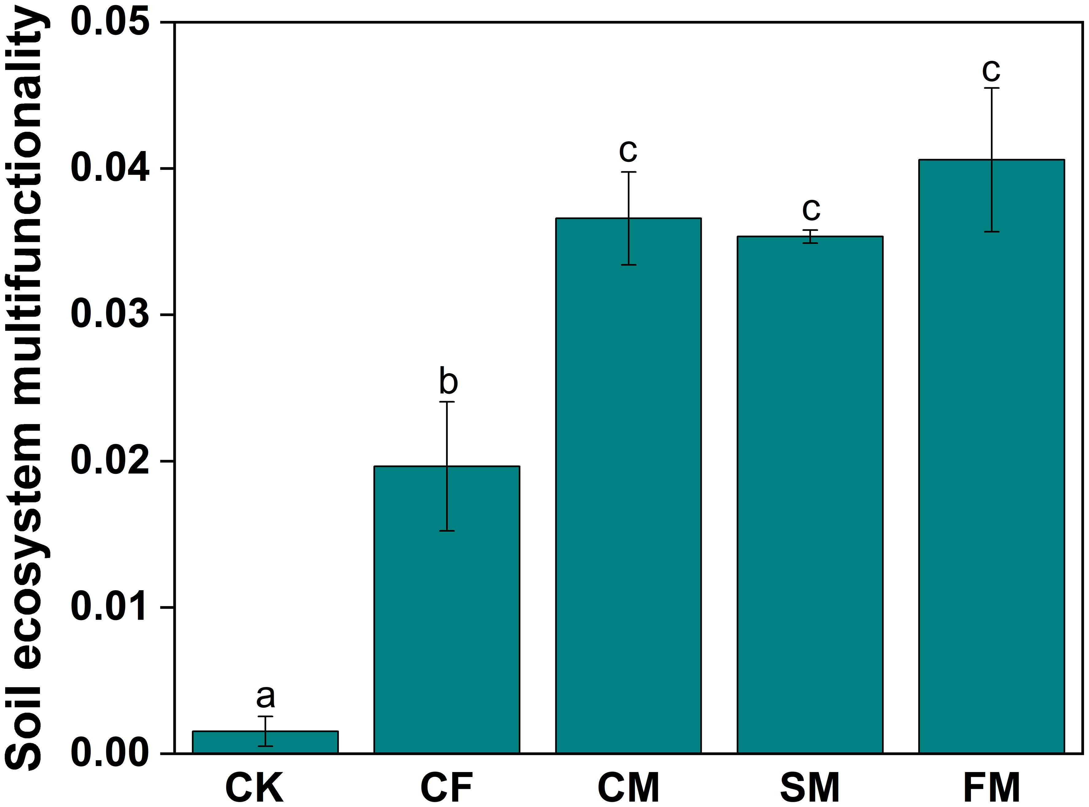 Figure 2. Soil ecosystem multifunctionality under different fertilizer practices. Different lowercase letters indicate significant differences at the p < 0.05 level.