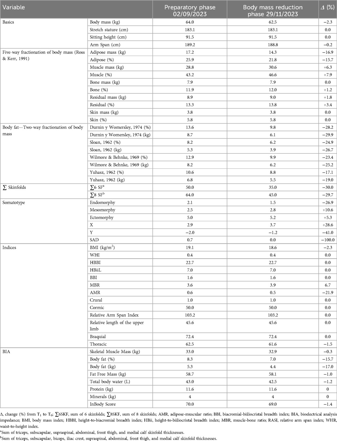 3.1 Anthropometric profile and changes during the preparatory and body mass reduction phase