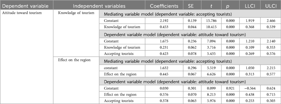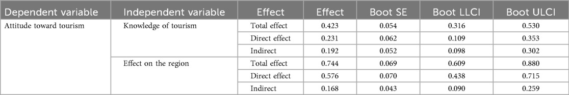 3.6 The mediating effect of tourism acceptance: the relationship between tourism knowledge and tourism attitudes