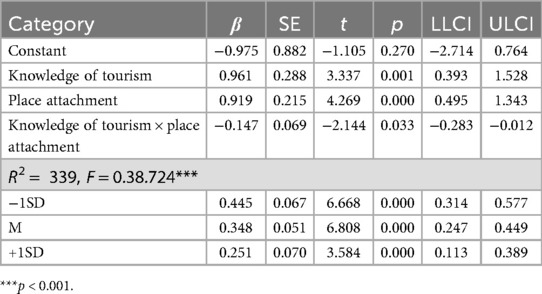 3.8 The moderating effect of place identity: the relationship between residents' knowledge of tourism and residents' attitudes toward tourism