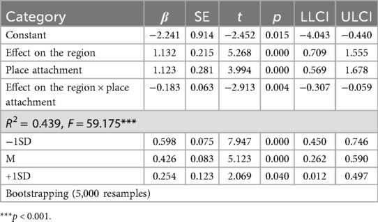 3.9 The moderating effect of place identity: the relationship between residents' perception of tourism and residents' attitudes toward tourism
