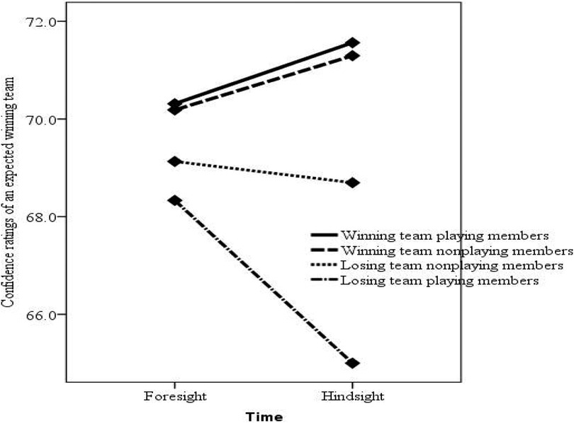 Conclusions: Playing members of a losing team used retroactive pessimism and showed greater hindsight bias. Winning team members showed greater hindsight bias, consistent with previous findings that people show hindsight bias for their own good performances. The results are further discussed in light of outcome controllability, expertise, and disappointment.