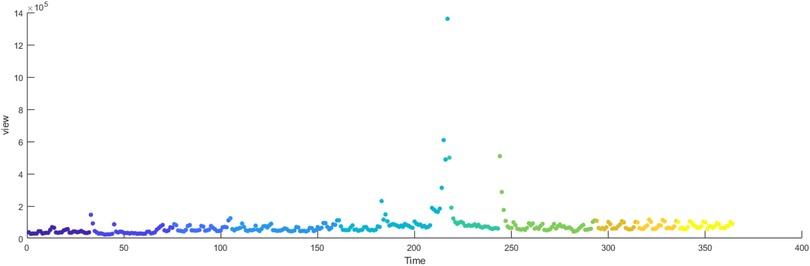 In temporal networks constructed from social media search data using “badminton” as the key term, nodes within the same community typically demonstrate synchronized attention cycles. From the perspective of complex system evolution, these communities correspond to distinct developmental phases of public engagement with badminton (44). Critical transition nodes serving as boundaries between communities act as mediating hubs in the network. These tipping points signify breakthrough moments in the measurable time-series data of the badminton attention system, marking both the conclusion of a previous developmental phase and the initiation of a new evolutionary stage. Characterized by extensive connectivity with multiple community nodes, these pivotal points exert substantial influence on neighboring node behaviors and play a crucial role in system dynamics reconstruction (45). They represent significant temporal markers in the evolutionary trajectory of public attention toward badminton.